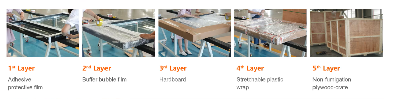Packaging: Adhesive protective film+Bubber film+Hardboard+Strechable plastic wrap+Non-fumigation plywood-crate